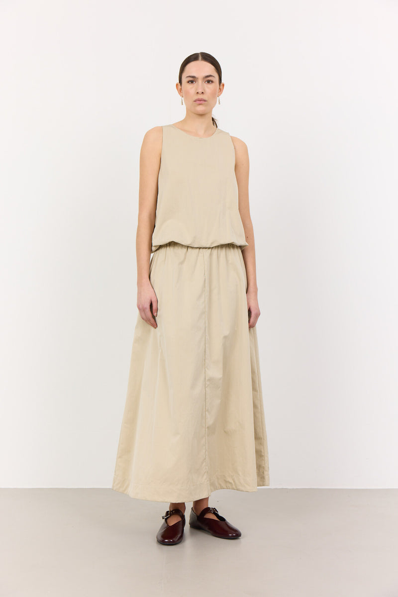 LR-LEA 2 er en elegant nederdel fremstillet af 55 % genbrugspolyester og 45 % nylon. Nederdelen har en elastisk linning, der giver en behagelig pasform, en midilængde og et a-formet design. Sæt den sammen med en tætsiddende top og loafers, for et flot look til mange lejligheder.