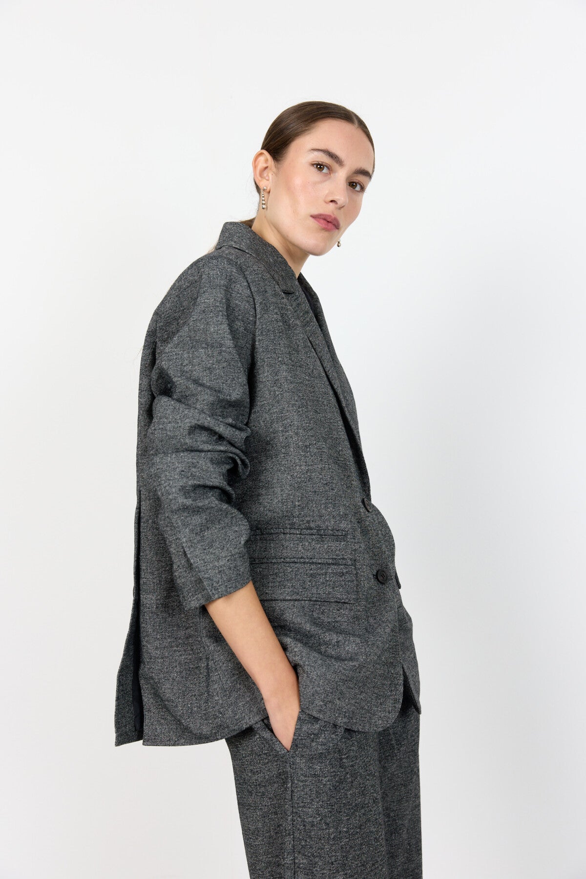 78% Polyester, 20% Genanvendt Uld, 2% Elastan