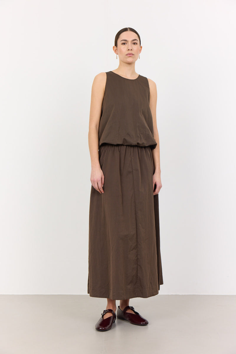 LR-LEA 2 er en elegant nederdel fremstillet af 55 % genbrugspolyester og 45 % nylon. Nederdelen har en elastisk linning, der giver en behagelig pasform, en midilængde og et a-formet design. Sæt den sammen med en tætsiddende top og loafers, for et flot look til mange lejligheder.