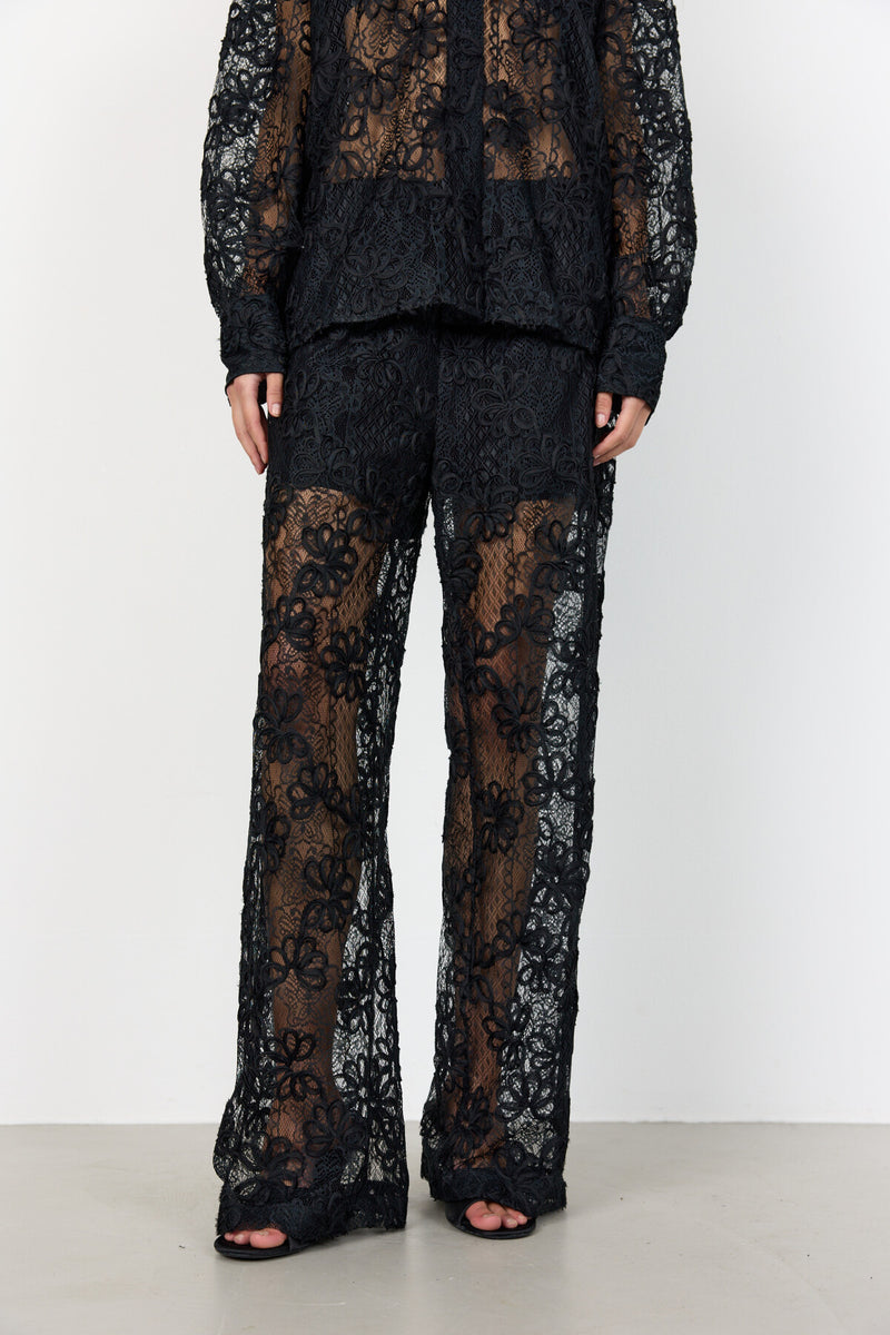 LR-OLERA 3 bukserer fremstillet af 100 % polyester. Bukserne har et elegant blondeovertræk med en behagelig elastisk linning og et design i fuld længde. Sæt dem sammen med en enkel top og elegante hæle for et unikt look.