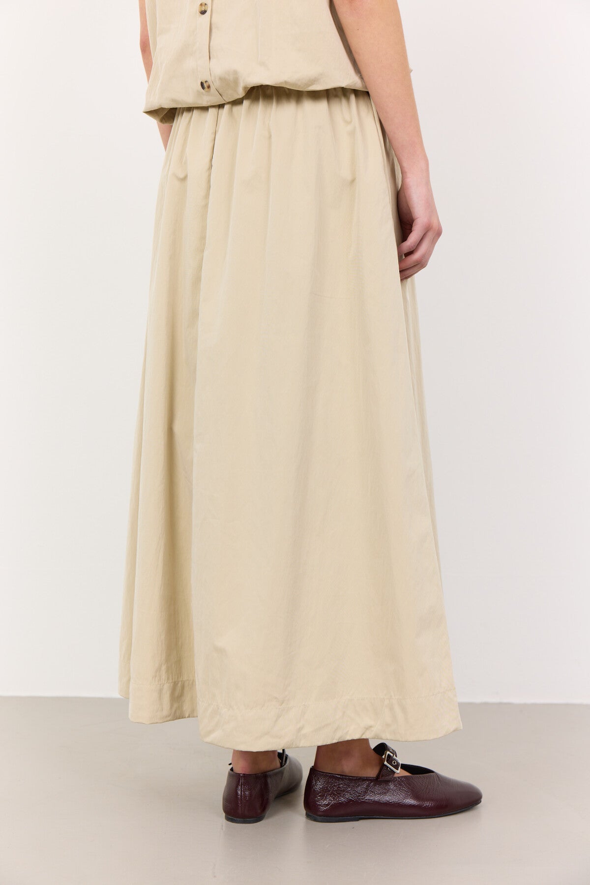 LR-LEA 2 er en elegant nederdel fremstillet af 55 % genbrugspolyester og 45 % nylon. Nederdelen har en elastisk linning, der giver en behagelig pasform, en midilængde og et a-formet design. Sæt den sammen med en tætsiddende top og loafers, for et flot look til mange lejligheder.